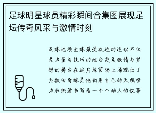 足球,这项全球最受欢迎的运动,不仅是一种竞技游戏,更是无数年轻人追逐梦想的舞台。在这个过程中,足球明星们如同指路明灯,照亮了他们青春岁月的激情与奋斗。本文将从四个方面深入探讨足球明星如何影响年轻人的梦想追求:首先,足球明星的榜样力量激励着年轻人;其次,奋斗与坚持在他们的职业生涯中展现出的重要性;第三,团队合作精神在比赛中的体现;最后,足球文化对青年价值观的塑造。通过这些角度,我们能够更好地理解足球...